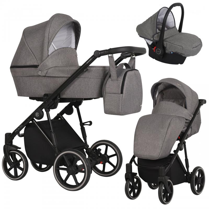 Molto – современная и эксклюзивная многофункциональная коляска с элегантным дизайном и множеством практичных решений. В коляске есть все аксессуары, необходимые с первого дня жизни. Эта коляска обеспечивает безопасность и комфорт во время прогулок.